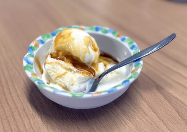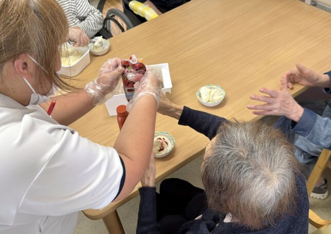 利用者様ご自身でアイスクリームスクープを使い、お好きな量を器に盛りつけていただきました。